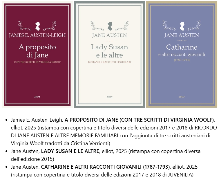 Nel mese di luglio 2017, in occasione del bicentenario austeniano, Elliot ha pubblicato tre volumi curati e tradotti da me: